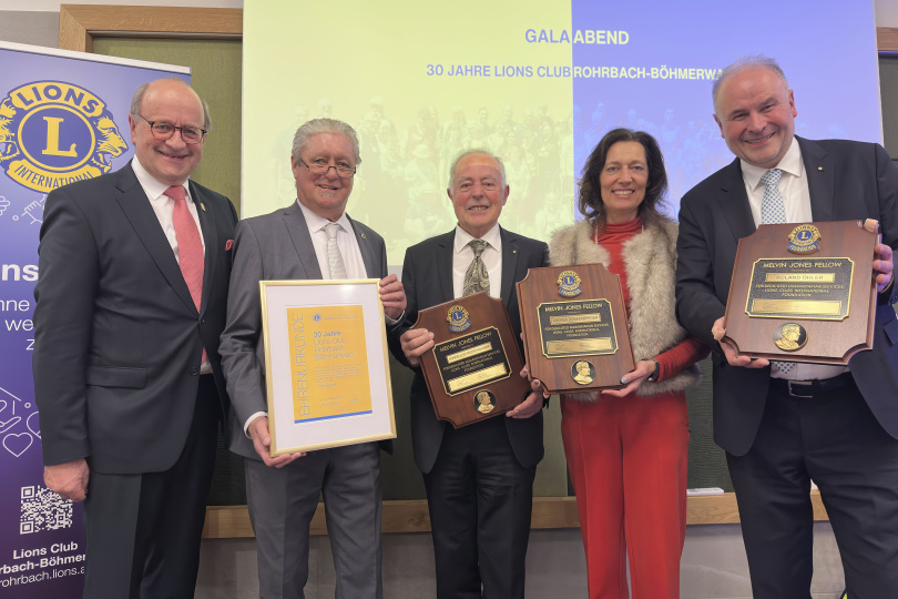 Dieser stellt mit Hubert Hartl aktuell auch den Distrikt Governer, der "seinem" Club ebenso gratulierte wie Vertreter von befreundeten Lions- und Serviceclubs. Hartl stellte sich bei besonders verdienten Clubmitgliedern auch mit Ehrungen ein: Fritz Ransmayr, Andrea Dobersberger und Roland Öhler erhielten dabei mit dem "Melvin Jones Fellow" die höchste Lions-Auszeichnung.
